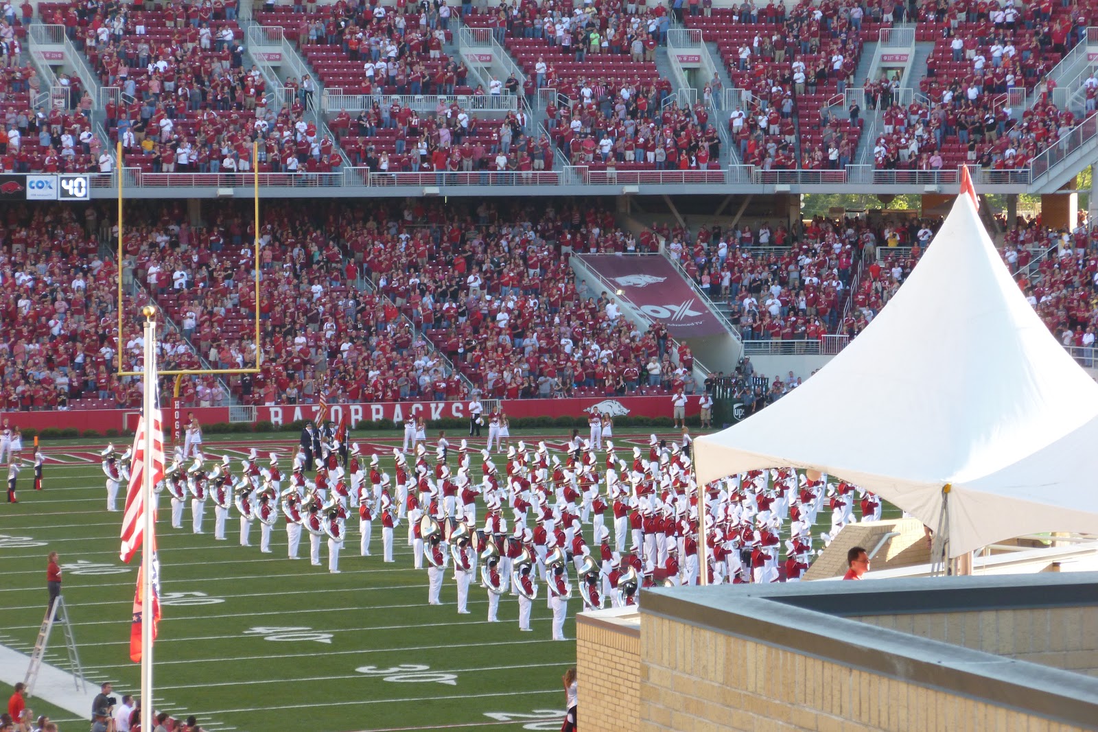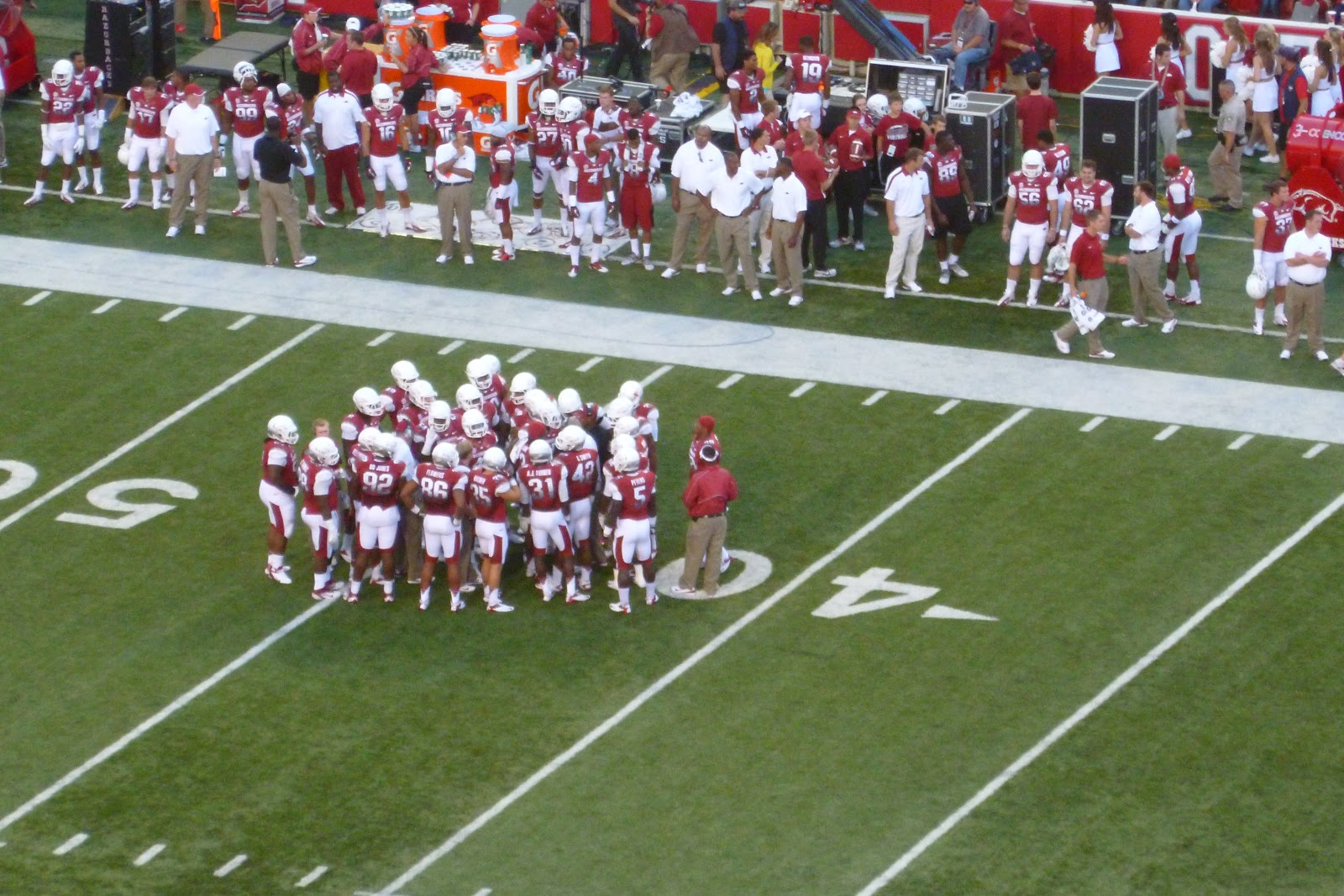 Abends wars dann aber wieder spannend, da ich auf mein erstes College Football game gegangen bin. Mit Tailgating und allem drum und dran. Alle waren in rot-weiß gekleidet, da dass die Farben des Colleges sind. Das war richtig voll und wir sind deswegen auch schon im 4. quater gegangen, da wir sonst wohl eine Stunde gebraucht hätten um aus dem Gedränge und allem herauszukommen. Soweit hat es Spaß gemacht, aber leider hat Arkansas gegen Rutgers verloren, obwohl die letztes Jahr 8. beste Mannschaft des Landes waren (oder so).
