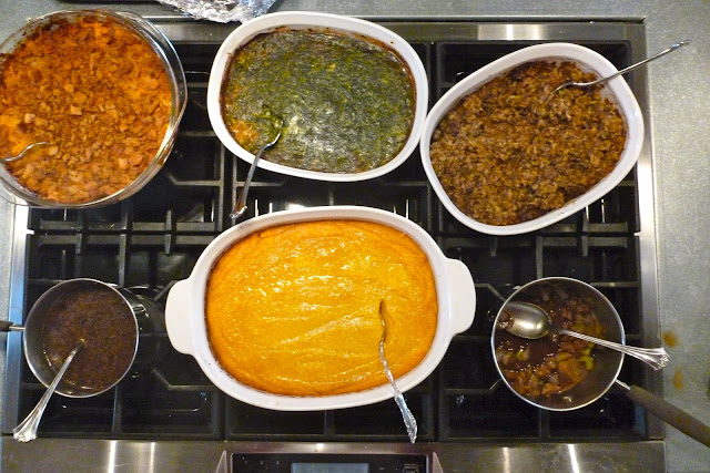 Bei mir war die ganze Familie da und wir hatten genug essen, um damit wohl an die 30 Leute satt machen zu können! Und dabei waren wir nur um die 17 Leute! Es gab Truthahn (ganz traditionell für Thanksgiving), Steak (ich mein, ich lebe in Amerika! :D ), Mac and Cheese, Griz (oder so was), grüne Bohnen mit Speck umhüllt, Reis, Spinat, irgendein super leckerer Dip für Crackers, kleine "Brötchen",...