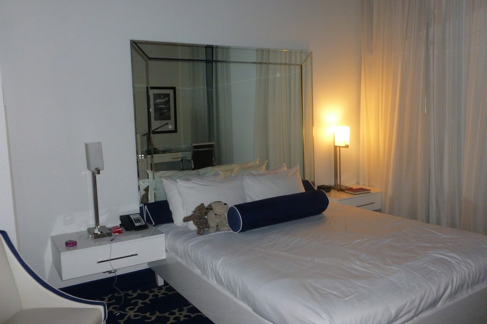Das Hotel in dem wir geblieben sind, war richtig schön! Zimmer in weiß-blau gehalten, viele Spiegel und modern!