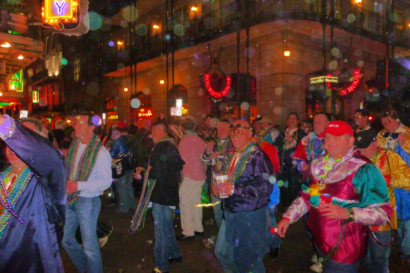 kleiner Mardi Gras Umzug auf Bourbon Street |